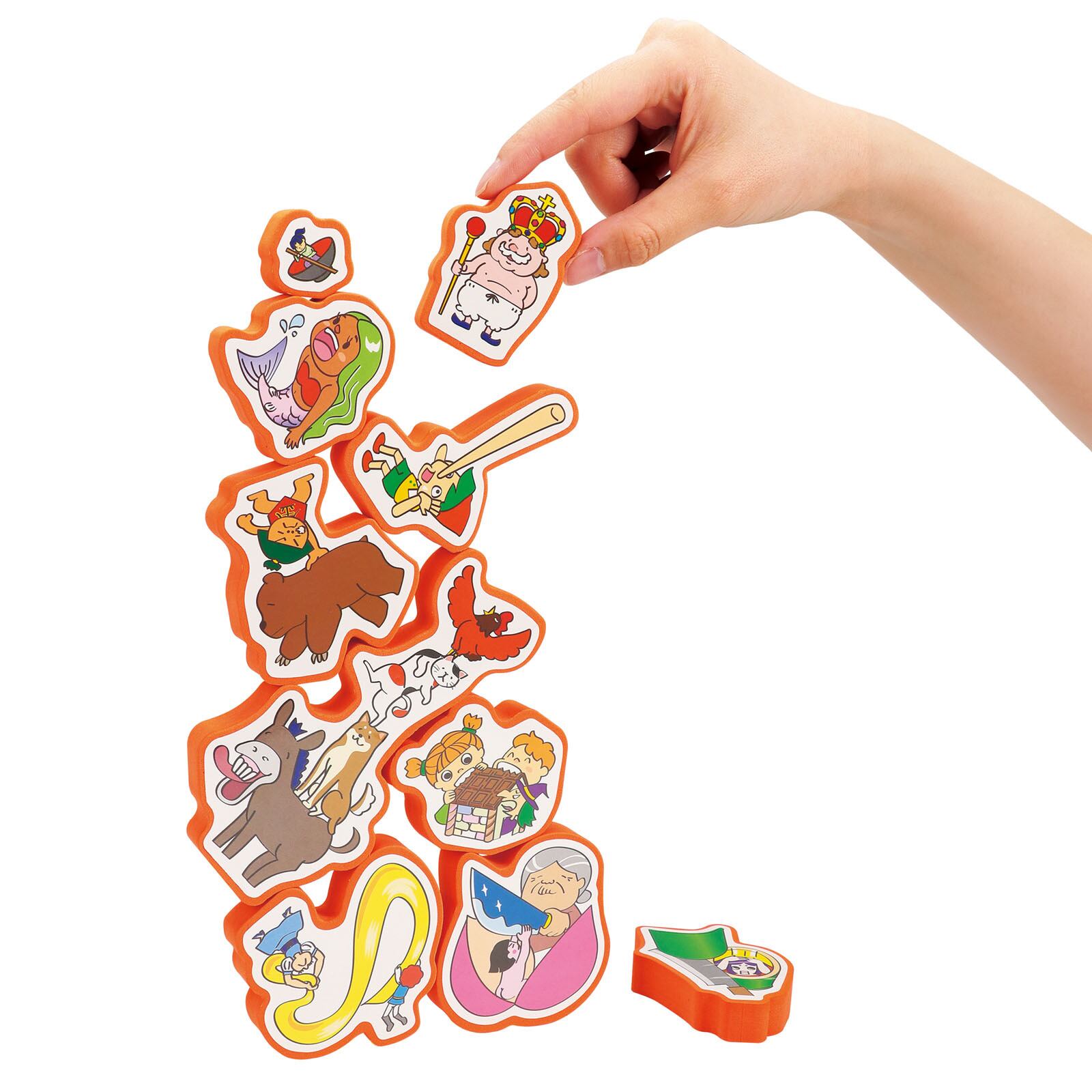 楽しいひとときをお届けする「つみあゲーム むかしばなし」は、昔話のキャラクターをつみ上げて遊ぶバランスゲームです!どの昔話の登場人物かを考えながら、集中力を養い、手指のトレーニングにも最適です。家族や友達と一緒に楽しい時間を過ごしましょう!