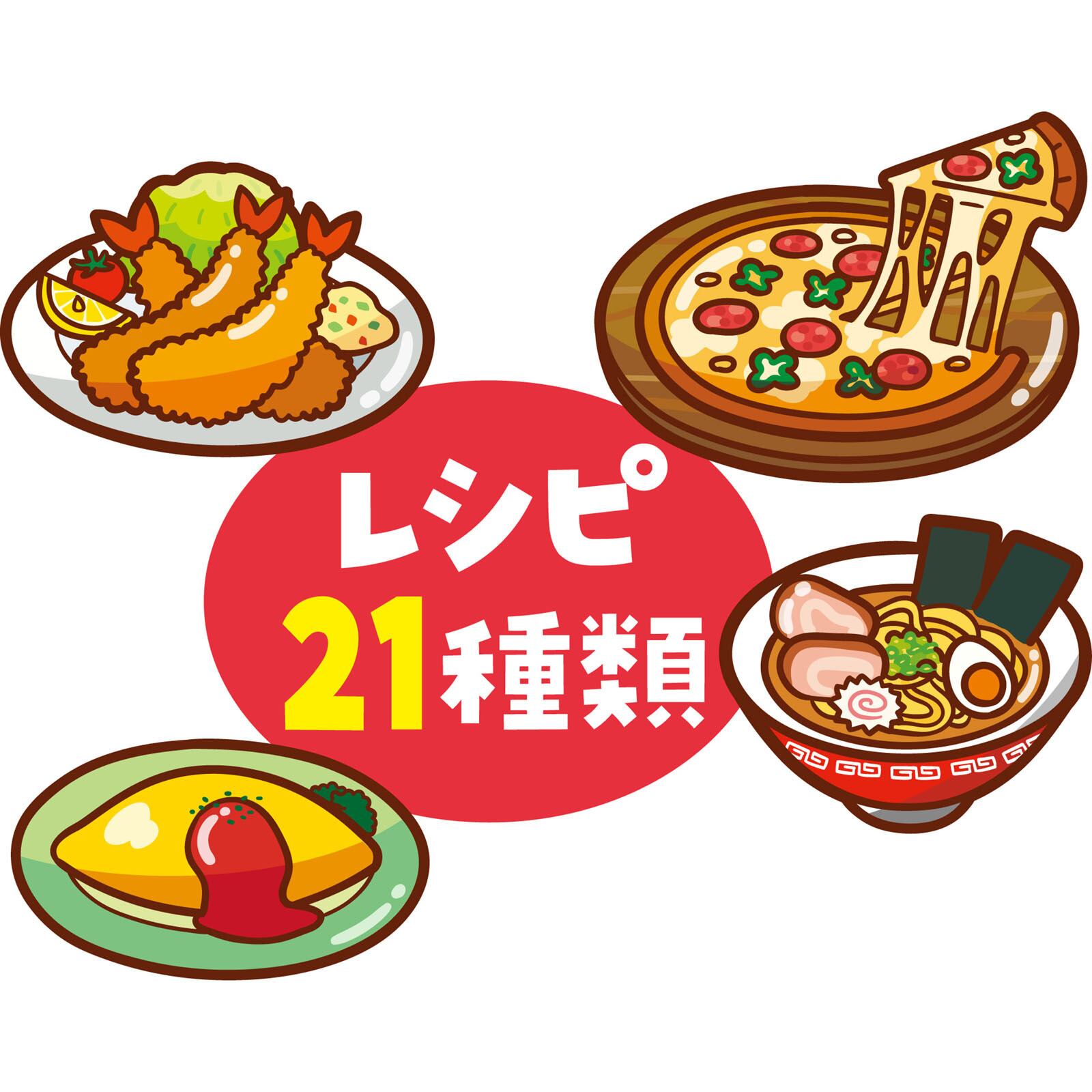 - カラー: カラフルな食材イラストを使った楽しいデザイン