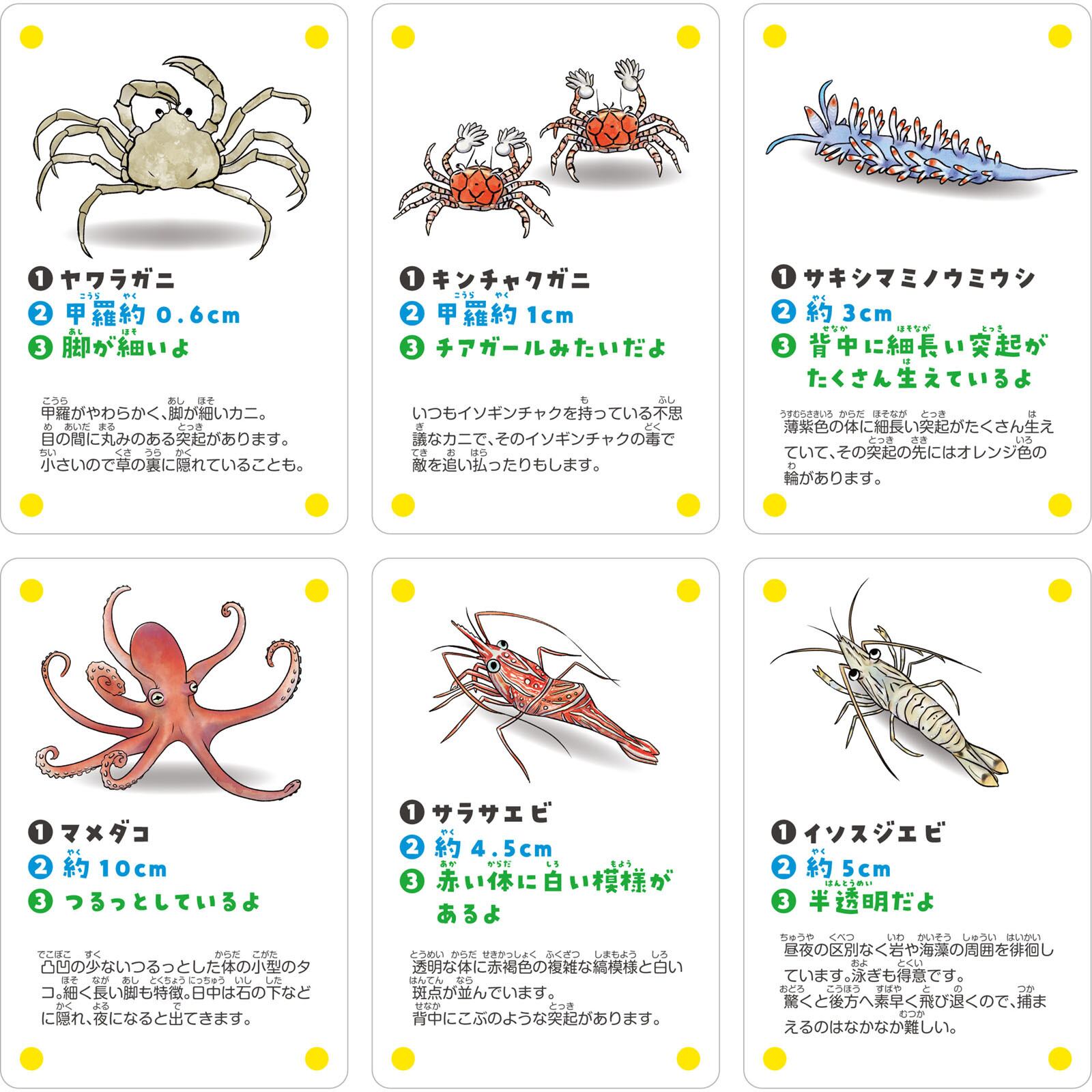かるたを通じて海辺の生き物を学びながら遊ぶことができる、親子で楽しめる商品です!可愛いイラストと本物サイズのいきものカードで、海の世界に浸りながら、楽しい時間を過ごすことができます。家族や友達と楽しく遊びましょう!